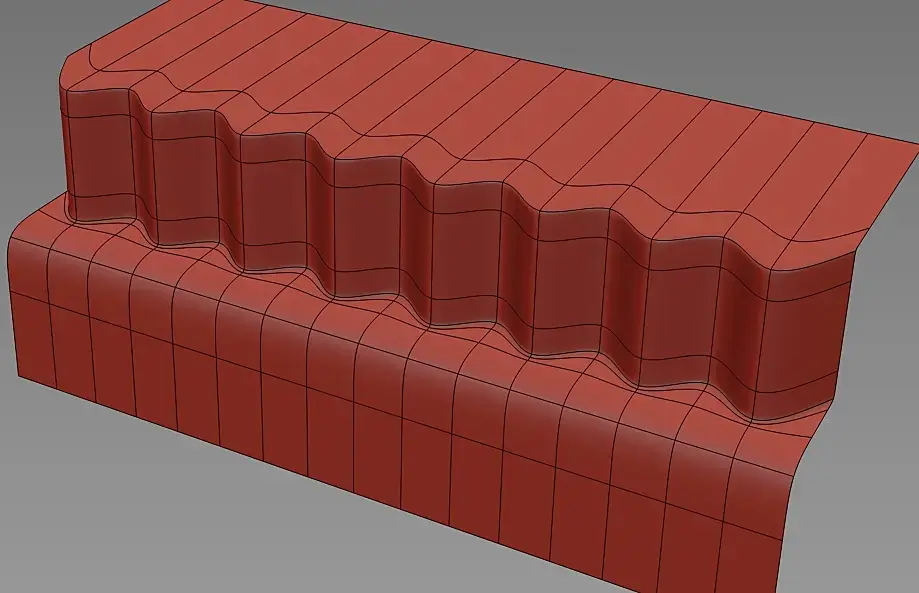 Ну и еще вопрос. Казалось бы, простейший пример, но хотелось бы, чтоб решение было правильным. Объект несимметричный, верх и низ, относительно оси разные. То, что выделено, это сплайны, которые показывают, где должны быть отверстия на объекте. Спроецировать недолго, ну, либо, обвести с привязкой, но вопрос в том, как это правильно вписать в сетку. отверстия в шахматном порядке, что очень усложняет работу. Сетка не под сглаживание, конечно. Вот. Надеюсь, не очень сумбурно.
