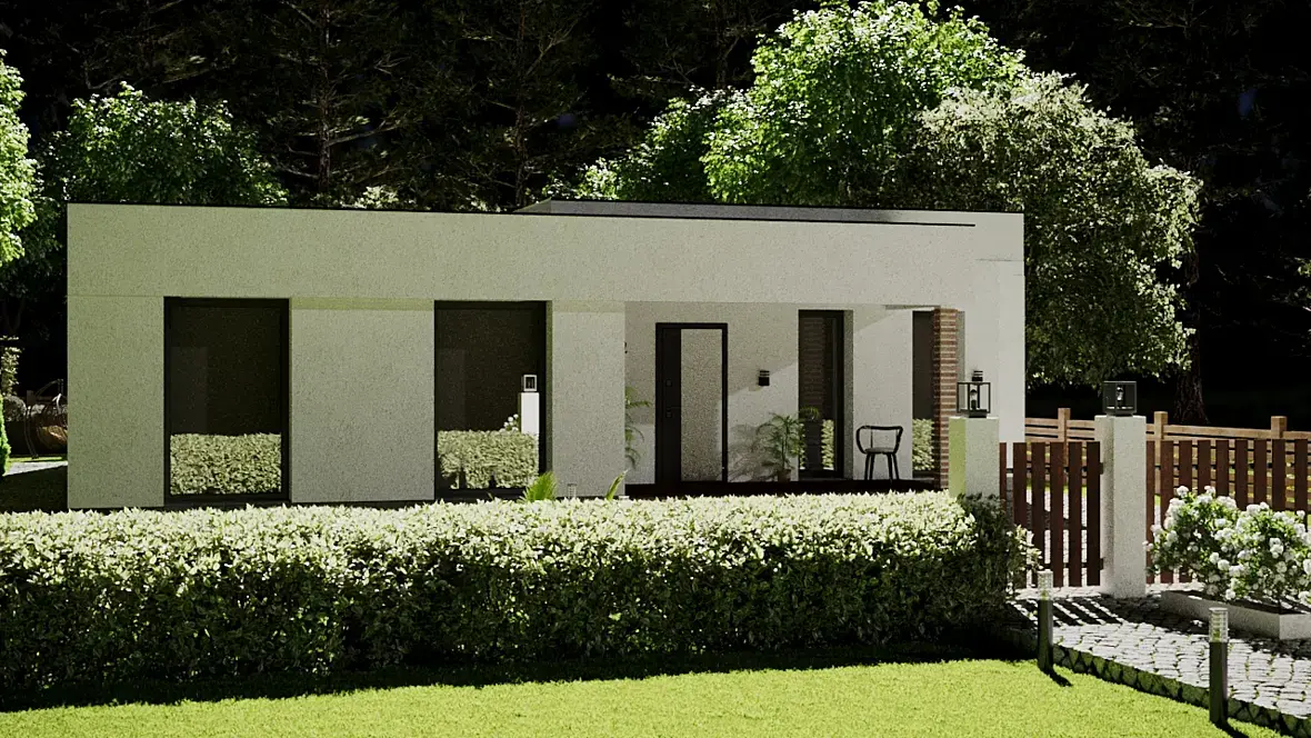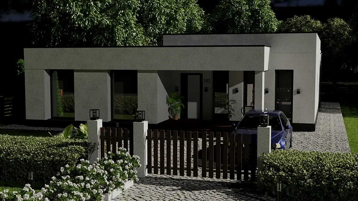 Я пробовал разбавлять деревом, металлом, выкрашивать нижнюю часть в другие цвета, но получалось так себе, можно попробовать добавить черных полос, видел такое в других экстерьерах.