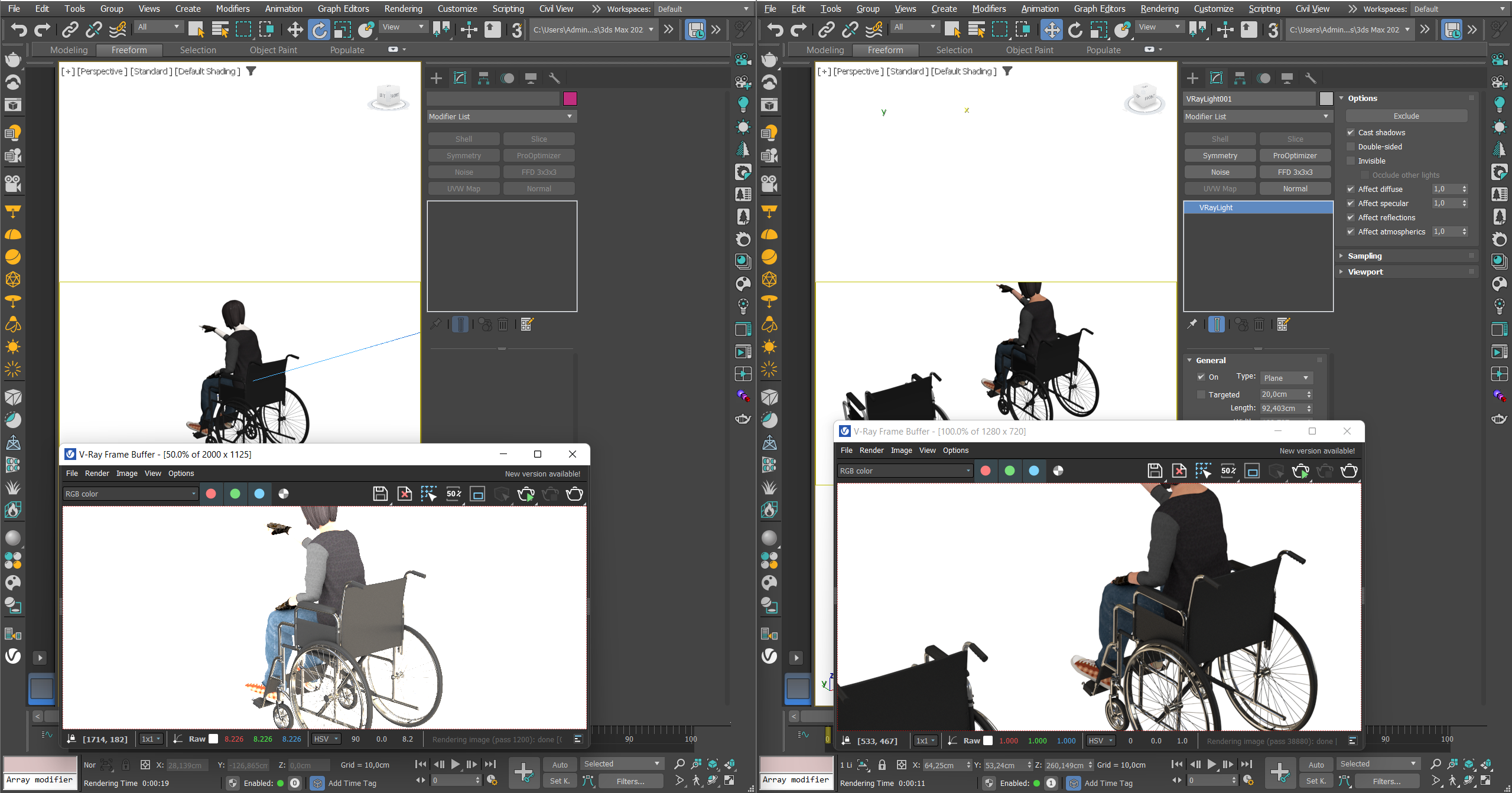 открыл файл скачанный из интернета (слева) - при рендеринге спиц у колес не видно. Взял и мерджнул этот файл (только геометрию) в новый файл по умолчанию - все стало нормально. Проверил все настройки (настройки рендера, света, окружения, гаммы) - везде на мой взгляд все одинаково. Вот терзает любопытство, что я пропустил и какой параметр не учел.