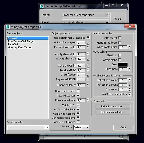 Добрый день, воспользовался поиском. но развёрнутой темы по каустике что-то не обнаружил. В общем, пытаюсь получить этот эффект. Посмотрел несколько видео, попробовал повторить. И вот что странно, обычные источники света у меня каустику генерировать не желают. Получается только в vray sun.Без солнца настройки следующие:В сцене плоскость, виреевский источник света и сам объект.Материал объекта