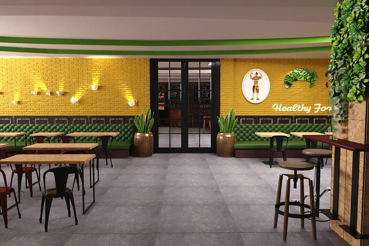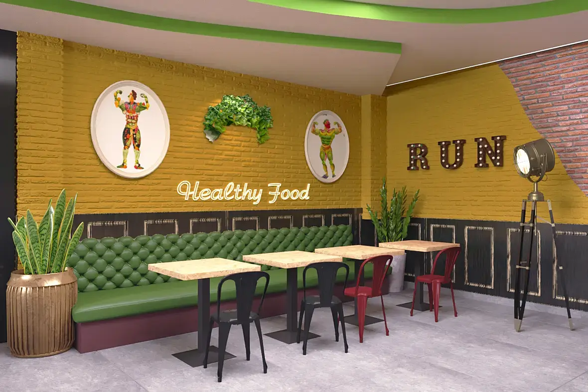 Был заказ, который я уже хочу отменить , во первых потому что заказчик сам не знает чего хочет , ну и весьма проблематичный..Это чайная-кафе , который находится на первом этаже спортного комплекса , и желания заказчика в лофт стиле увидеть и спорт и здоровую пищу, и естественно не забыть что это чайная ,есть кирпичные стены , желательно оставить, ну или покрасить на худой конец , пол и потолок оставить всё как есть..что тоже затрудняет .