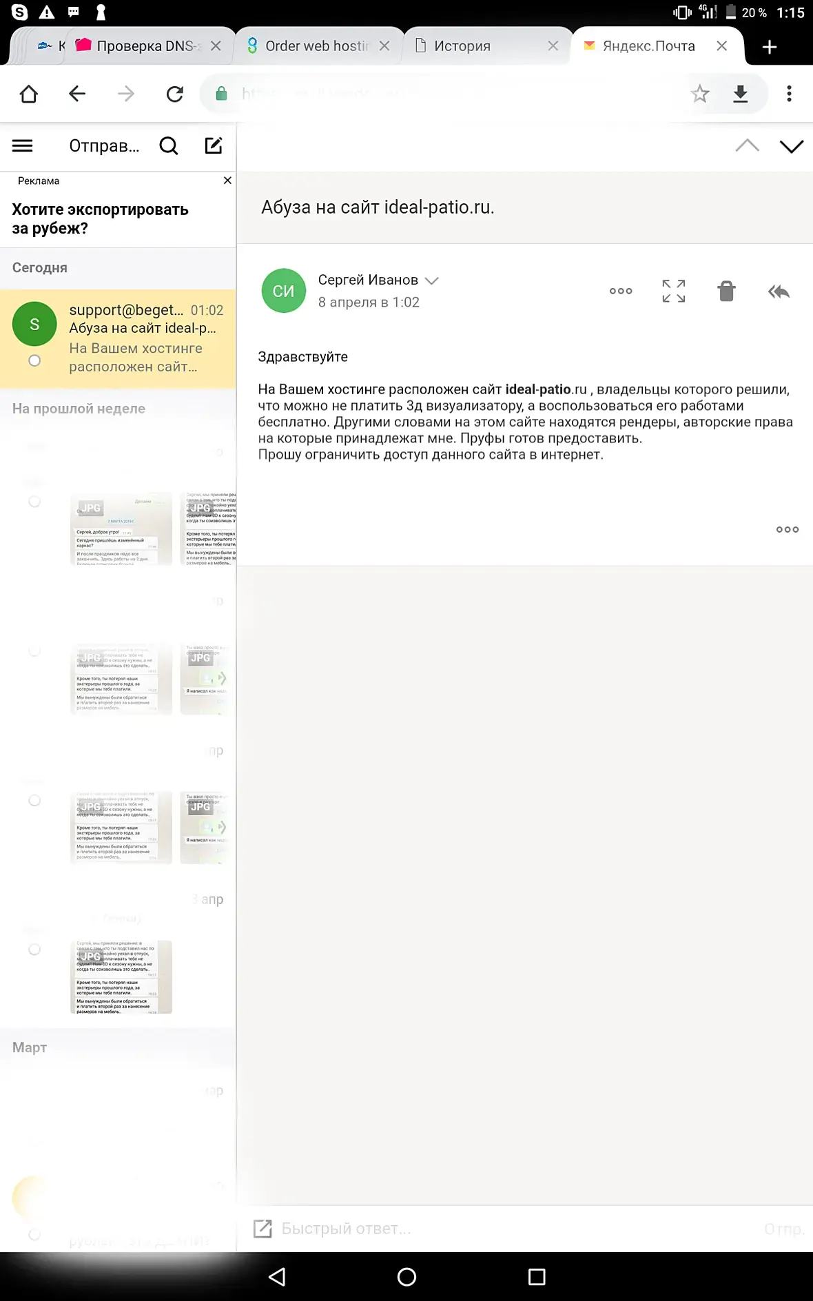 Планирую так же разослать сначала просьбы удалить рендеры их партнёрам (коих большое количество), а если не захотят, то тоже абузы уже на их сайты. Что скажете?