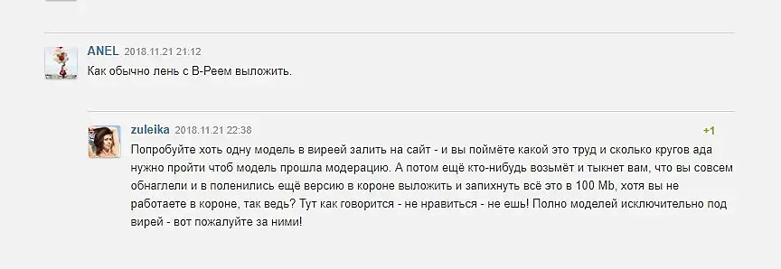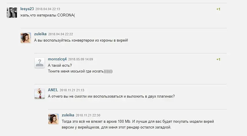 По мне так лучше выложить версии под вирейку и корону. Я конечно понимаю что некоторые неосведомлены, и тд. Но моделлеры же выступают как продавцы, (никто же не заставляет продавать по 150), и это шаг навстречу покупателям. Хотя конечно про иттерации в турбосмусе это уже из ряда вон. Ну так доцент ему ничего и не ответил) Зачем.