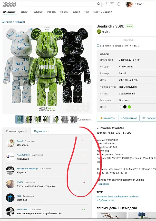 Но наиболее странно видеть "спасибо" под своей моделью, которую уже неделю никто не покупал, от профиля с нулем моделей. За что они благодарят? Превьюшку себе скачивают на память что ли?