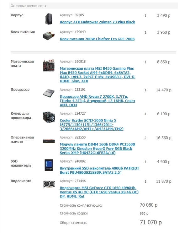 Ну а там уже смотрите, чем пожертвовать, ради проца помощнее. Может, видюха в наличии есть, да и всё. Либо 10 тыр сверху накиньте, 3700х стоит ~24000р.