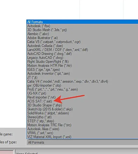 обьекты в формате sat можно открыть в 3DSmax через импорт