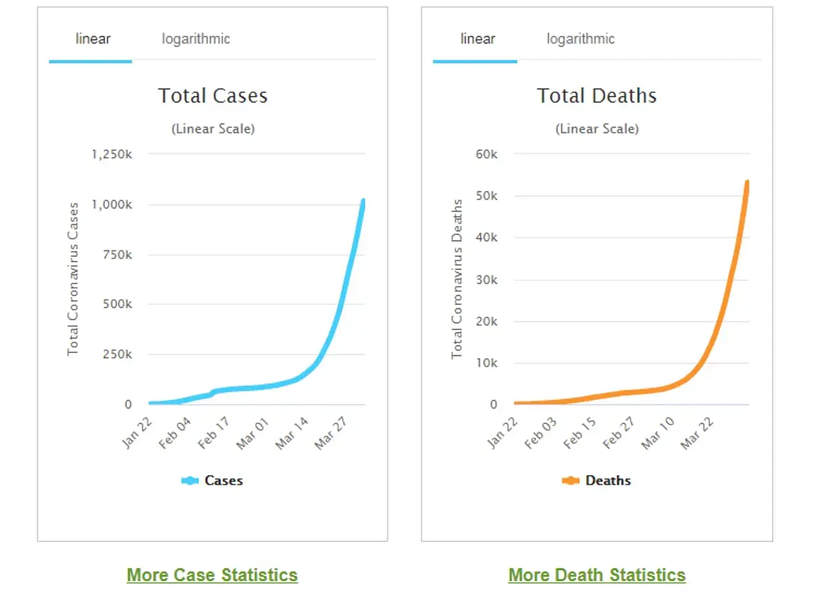 Я только за. Переходим на этот сайт - https://www.worldometers.info/coronavirus/ нажимаем кнопочку Yesterday и видим совершенно другие цифры - новые случаи за вчерашний день - 79,869, смерти за вчерашний день - 5,975