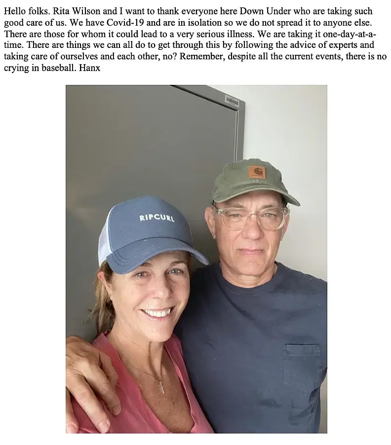 Том Хенкс просто написал что у него коронавирус и слабость как при простуде, ни о пневмонии, ни о сильном кашле он не писал, почитайте его пост. Он простудился. О covid-19 не было не слова. Это очень похоже на вброс.