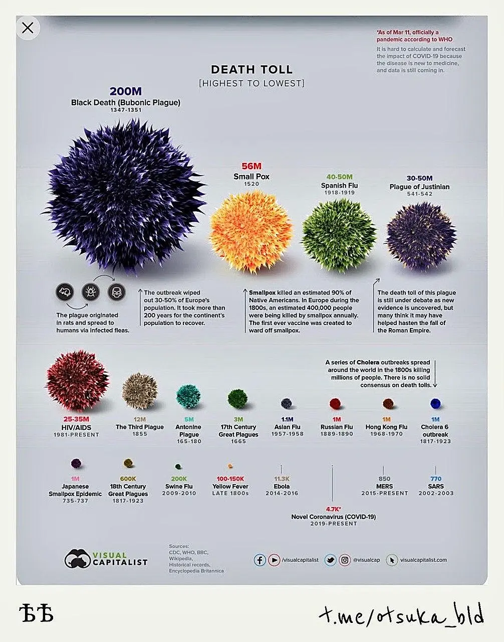 Инфографика с помпонами должна успокаивать? По типу сосед попал в реанимашку а я нет, юхху? Что-то меня не успокаивает что от бубонной чумы умерло больше народа.