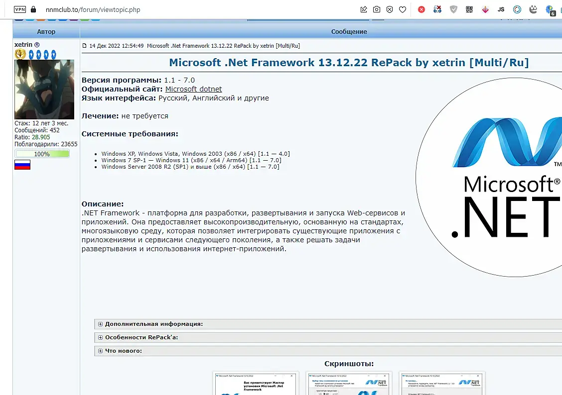 если ссылку надо будет удалить, то называется - Microsoft .Net Framework 13.12.22 RePack by xetrin по сути там просто все версии собраны кучкой. Всякие эти фиксы, исправление , повторная уставного - все это не помогало, надо просто поставить с первой версии по по пятую все что выходили. Можно это и с офф сайта наверное покачивать, да поставить, но пак удобней. Единственное в конце установки он просто закрывается и все, без предупреждения, это нормально. надо снова запустить установщик и выбрать следующую по списку версии и так далее.