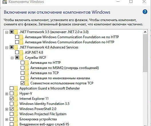 Если не секрет - как эта служба называется?... По версиям .NET- лично у меня включено то же что и других по умолчанию, 3,5 и 4,8 и у других ровно такая же картина - но не работает. Про то что нужно активировать вручную службу - не слышал, потому подскажите как она правильно хоть называется, в службах порылся не нашел ничего по смыслу подходящего..