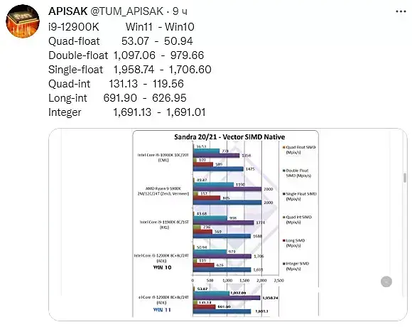Чувак за сливами которого пол мира техноблоггеров смотрит уже больше 6 лет, и который ни разу на моей памяти не ошибался вбрасывает вот такую вот инфу... Видать планировщик для гетерогенных процессоров творит чудеса. И эту информацию нам скармливали понемногу уже на протяжении полу года. Что Алдер Лейки будут на Вин11 получше себя чувствовать. Ну такое... Вот. Если я и буду Алдер Лейк брать на релизе то Вин10 сразу же в вонючую помойку отправится А если так монета ляжет что выгоднее будет на Warhol оставаться то так и быть, посижу еще на пожилой пристарелой Вин10