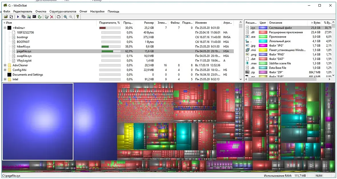 Разобрался, я просто затупил забыв о файле подкачки. У меня 24 гб оперативы и я на всякий назначил 16 гб на С, на скрине это pagefile.sys, плюс еще около 10 это оперативка резервирует, на случай если в сон отправлю - это hiberfil.sys, осталось найти еще порядка 17.