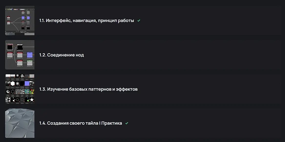 Пару дней назад как раз загрузили полноценный курс по Substance 3D Designer с домашками и кураторской поддержкой от суперпрофи в этой теме. Ещё не успели обновить информацию на сайте. Вот ссылка на первые базовые бесплатные уроки. https://happy3d.ru/teach/control/stream/view/id/924959395