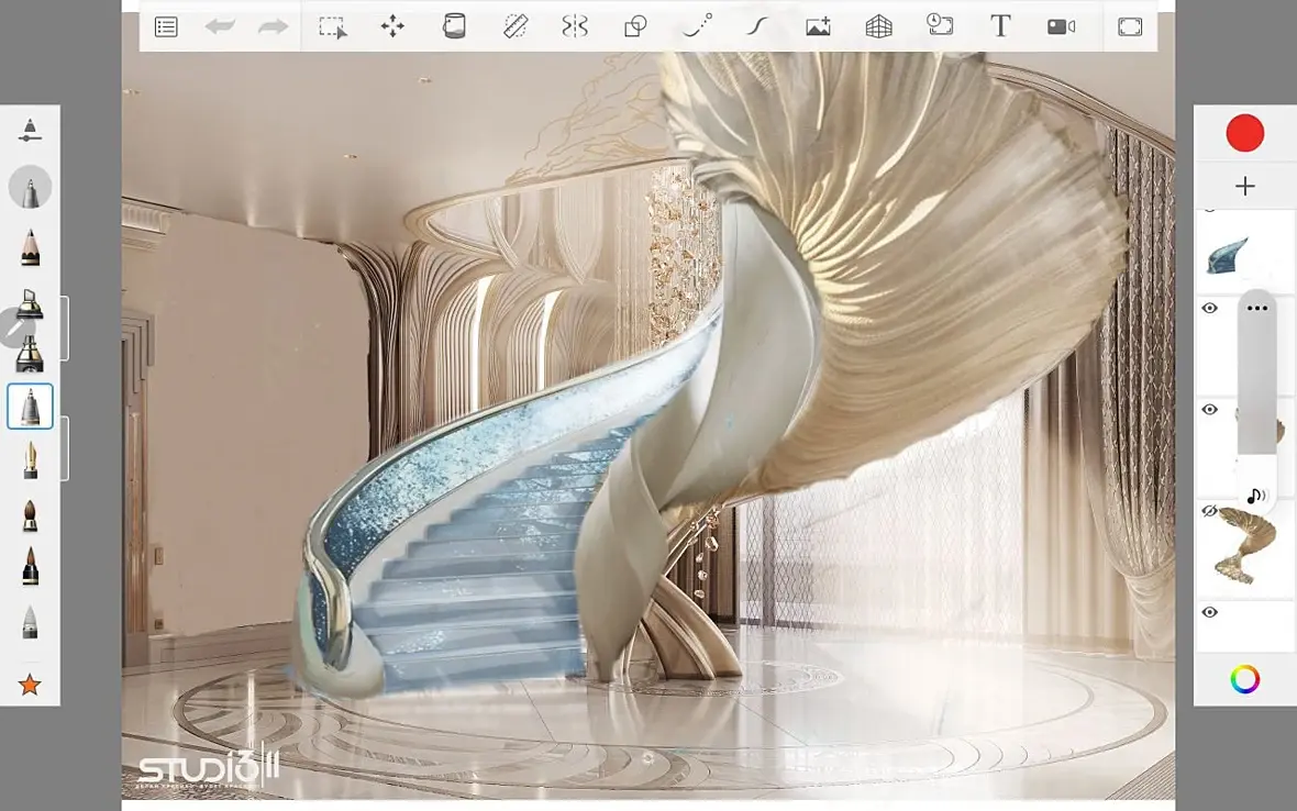 2) Перила в виде спирали, тут пока особо не задумывался как делать, но с помощью Sweep и Loft неудобно