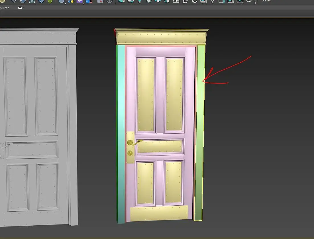 Рис.3 - модель шкафа симметричная, и с другой стороны уже такого стыка нет (рис. 2), но появляется тень диагонали, которой на модели .max нет. И таких диагоналей еще несколько на всю модель.