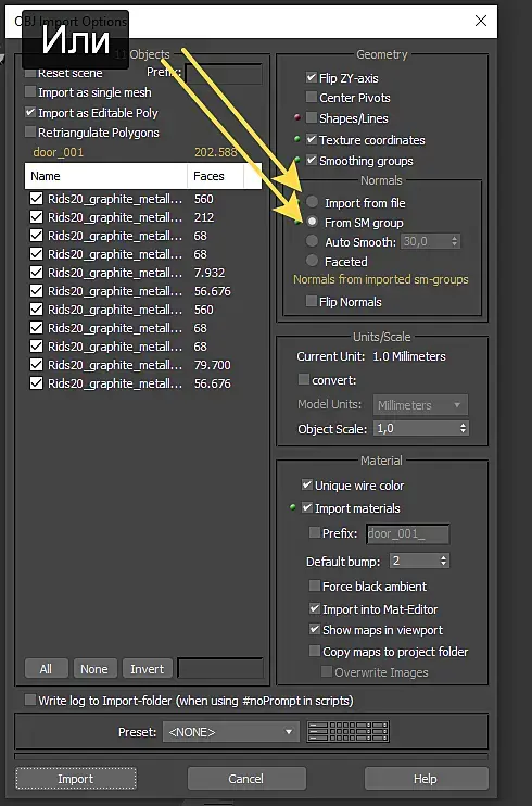 Реанимирую тему. нужна помощь. Макс нещадно калечит obj файл. сначала так начал делать 2022. теперь делает 2018. Все настройки экспорта перепробовал, при импорте выходит это