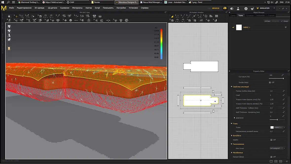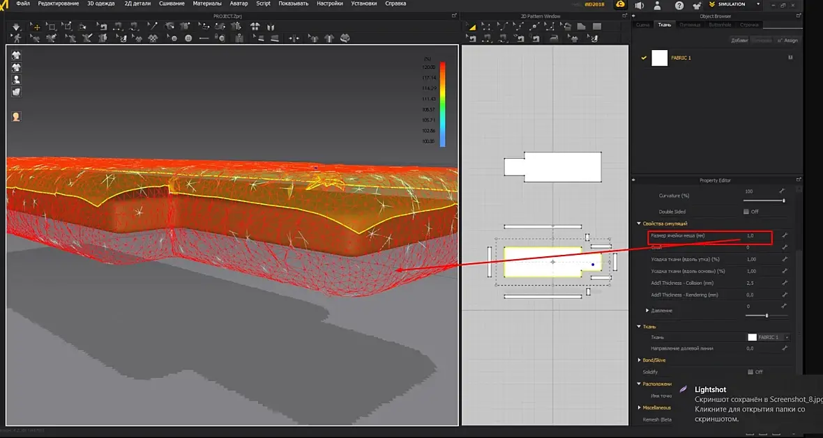Добрый вечер всем, совсем недавно (точнее 1 день назад) захотел изучить такую программу Marvelous Designer, понимаю что всех функций, мелочей я не знаю, но даже в видеоуроках я не нашёл нужного ответа, я вообще не понимаю как решить данную проблему. Суть вот в чём, я хочу чтобы мою "подушку" облегала ткань, давление на нуле, но при симуляции ткань ка буд-то пот давлением. Почему так происходит? что сделать чтобы решить данную проблему