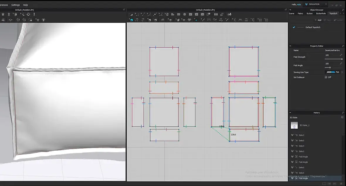 Делаю клон слоёв надутой подухи, удаляю швы с копии и линкед редактирование. Надувание на 0. Офсет паттерн (с интернал линией), сшиваю интернал линии с базовой подухой, а хвосты между собой.