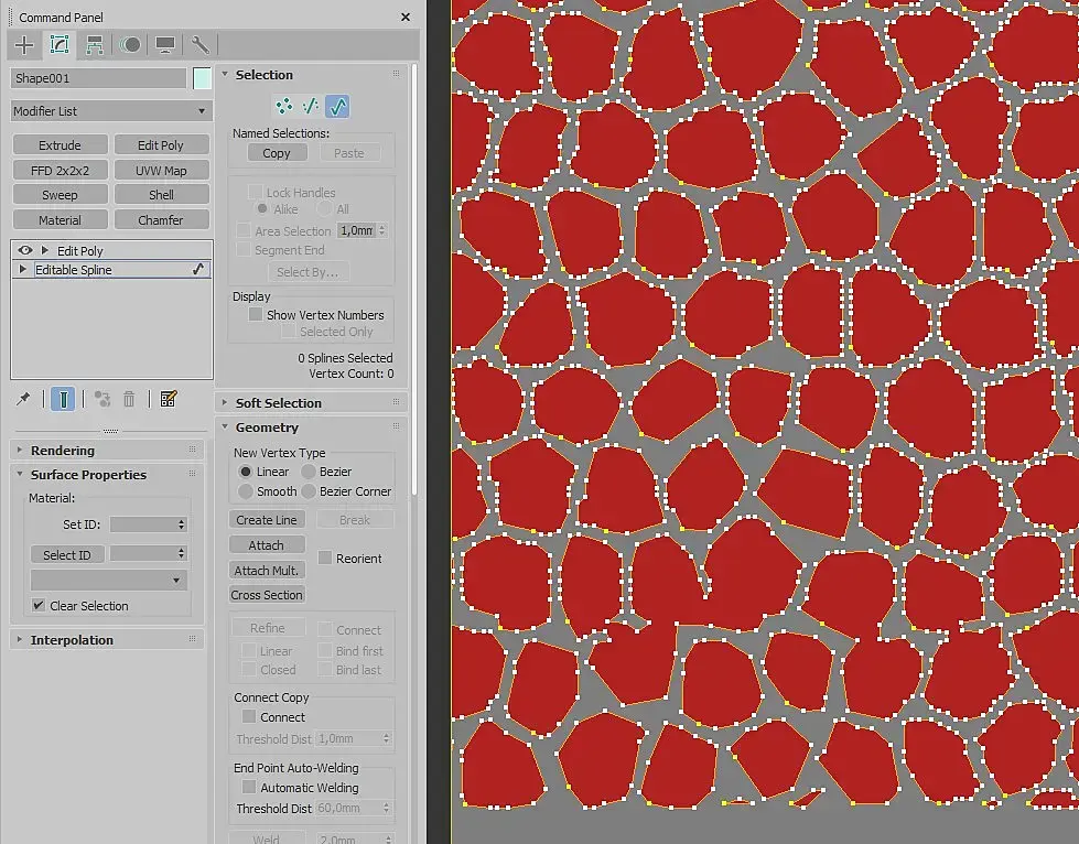 При желании можно потом перевести форест в геометрию, свелдить точки, выделить бордеры и сделать из них сплайны. После пары итераций велда точек получится приличный сплайн с плавными краями. На моём примере в паре мест сплайны разных тайлов соединились, но просто надо аккуратнее карту для фореста нарисовать, чтоб мозаики не соединялись нигде.