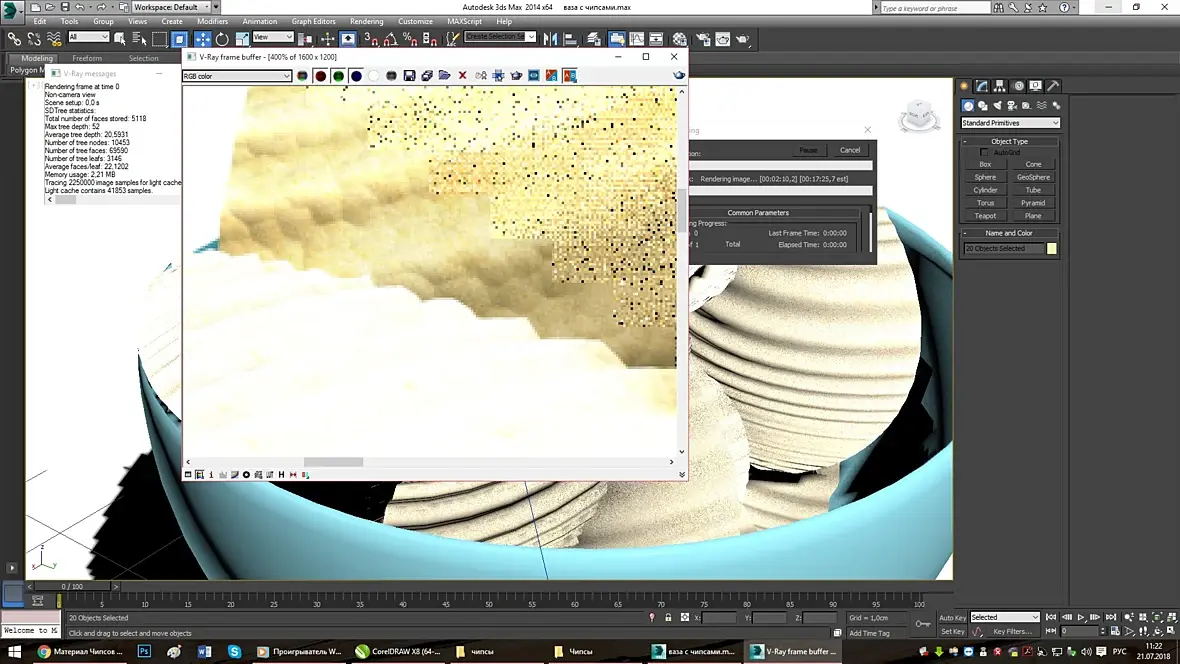 Здравствуйте. Помогите пожалуйста как визуализировать реалистичный "чипс"? У меня никак не получается реалистично, вроде нарисовал чипсы а материалы и так и сяк пробую не получается реалистично, даже если в фотошопе доработать всё равно как искусственный...