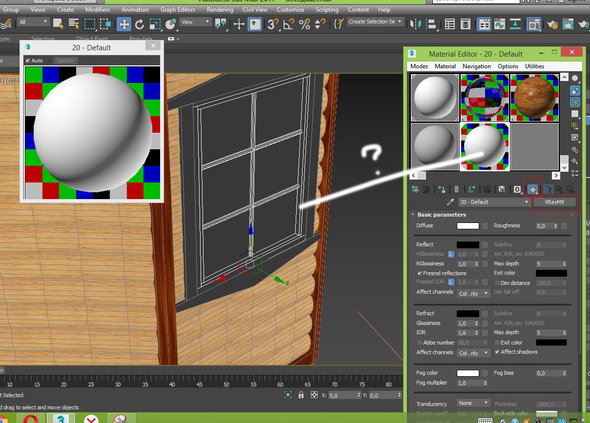 3) создала материал VreyMTL, просто белый цвет (др, настройки не трогала), присваиваю объекту - он становиться серый! если накладываю картинку через битман, то цвет появляется(если просто цвет или стекло - объект становиться серым)