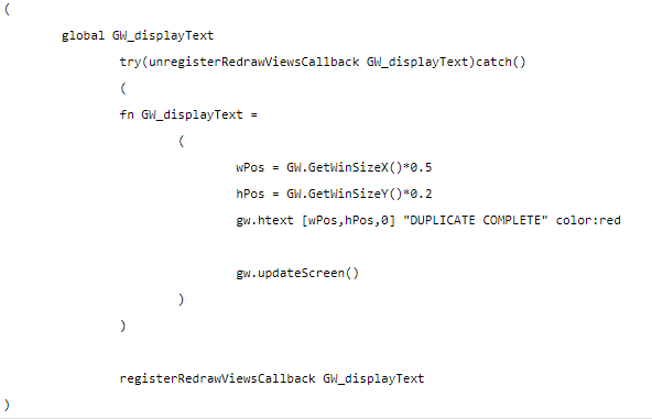 Всем привет! Есть такой вопрос. Есть функция для отображения надписи на экране (например статистика вершин в сцене). Нужно, чтобы она не висела на экране постоянно, а появлялась только на 3 секунды после срабатывания скрипта.