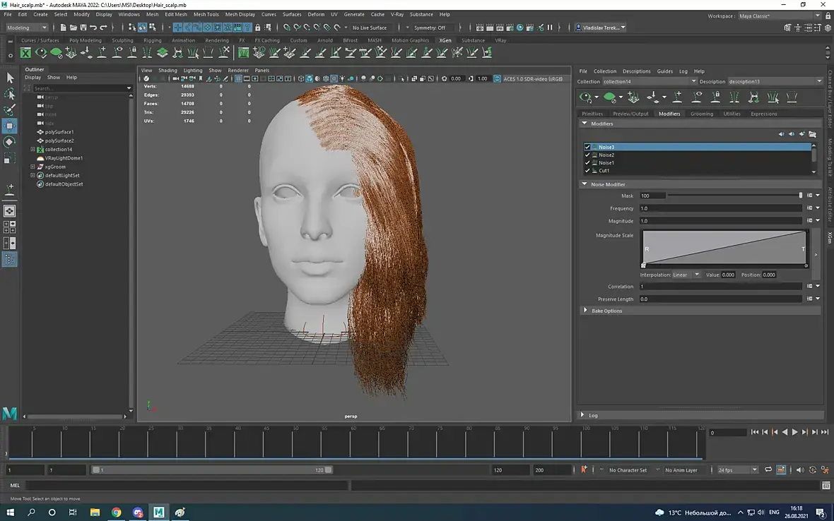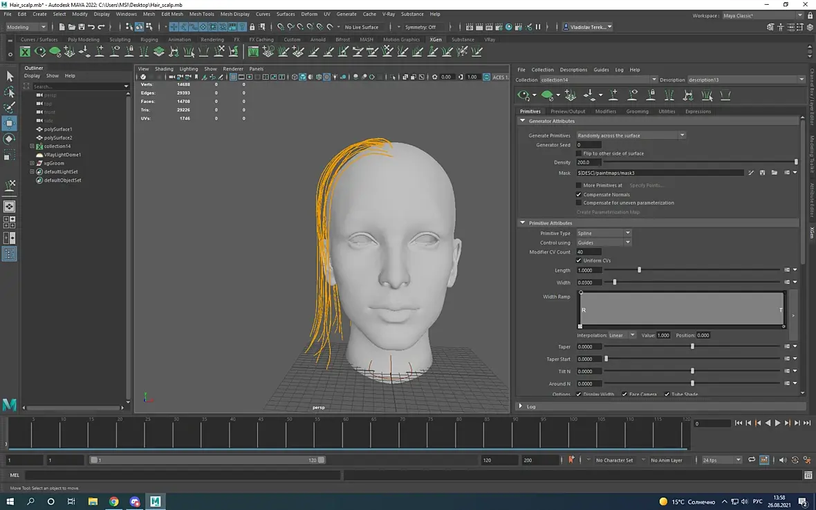 И снова здравствуйте. Начал изучать XGEN. Создаю волосы (НЕ IGS) отделил скальп от головы, накинул гайд, пару модификаторов, смотрю превью, а волосу растут через кожу вниз....Будто Мая не воспринимает скальп как объект коллизии. Пробовал исправить с помощью Region и Density Mask, но все мимо
