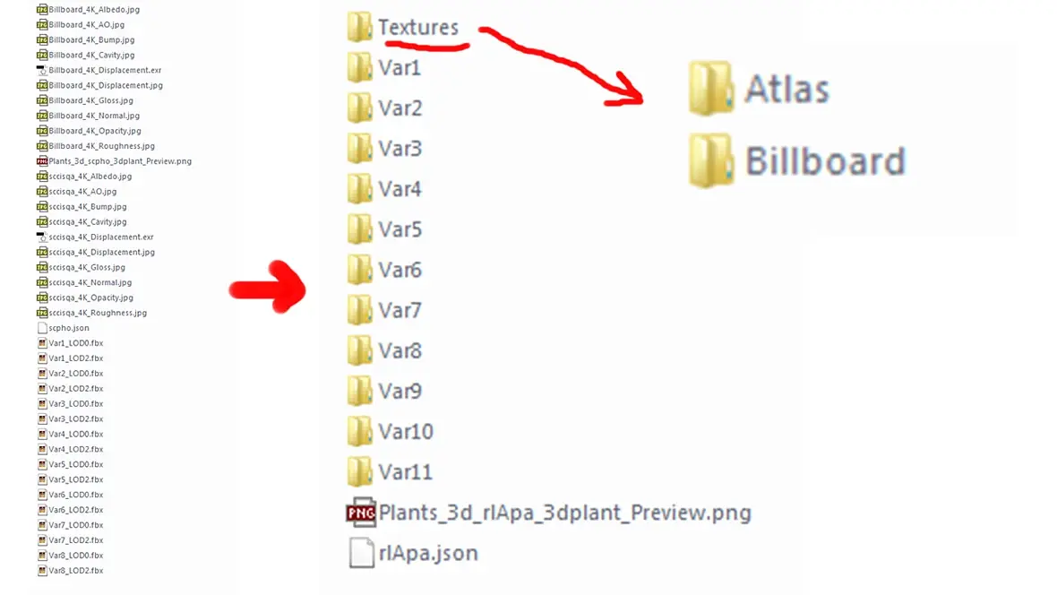 проверьте как в папке с моделью лежат текстуры.Нужно чтоб объекты и текстуры были разложены по папкам, текстуры в папке Textures, внутри которой ещё 2 папки Atlas и Billboard.