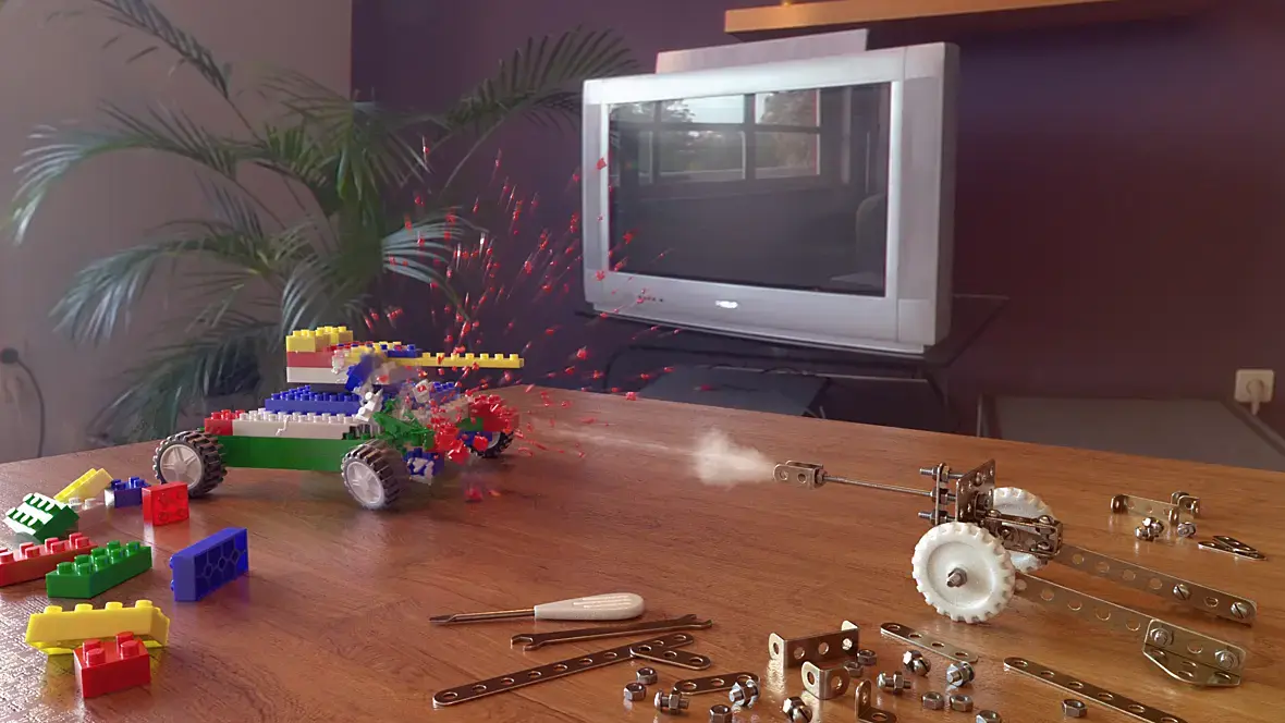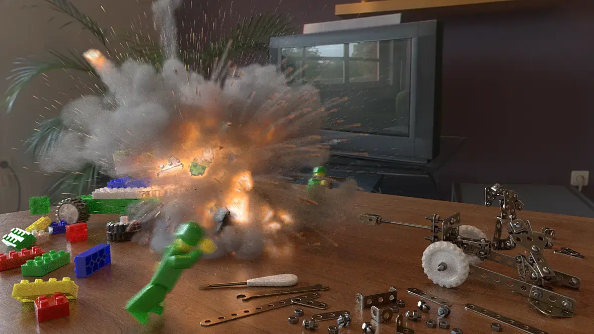 И в общем то всё там мне нравится, кроме собственно, самого выстрела-взрыва. И дело не в том что я не могу сделать, а в том что я не вполне представляю, что именно надо делать, как он действительно может выглядеть, в таких условиях, в таких масштабах. И добавил уже туда действующих персонажей, погнал уже всё подряд симулировать анимировать.... В общем пока так...