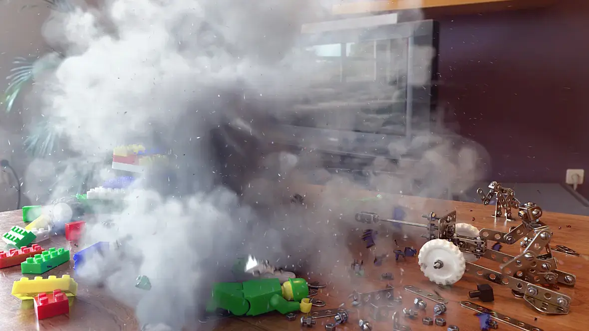 Добавил мелких частиц, типа мелкие осколки искры пыль.