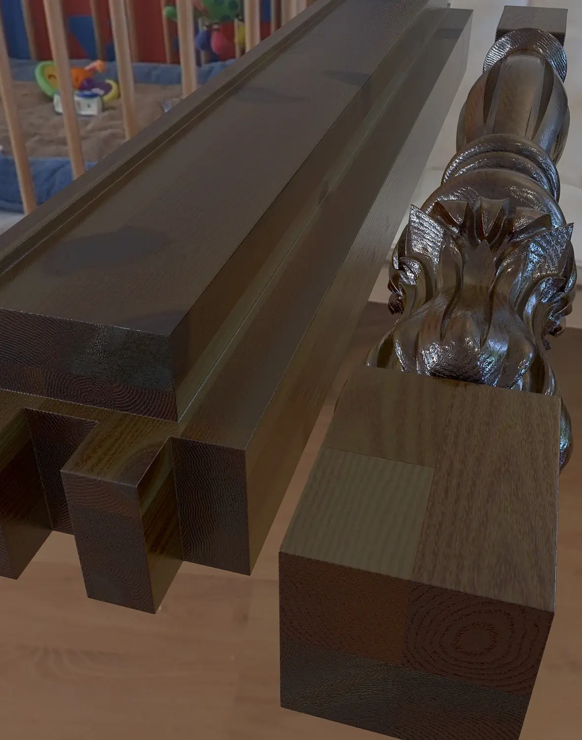 Каждый кто возьмёт этот материал прямо сейчас совершенно бесплатно, получит в подарок модель балясины, Но и это ещё не всё, там валяется hdr но она не моя и хз что у неё за лицензия поэтому не дарю, можете сами взять.))) Поскольку чистое дерево мало кому нужно, там на втором слое тоже самое, покрытое тёмным лаком. Покрыл прям так не шкуря.