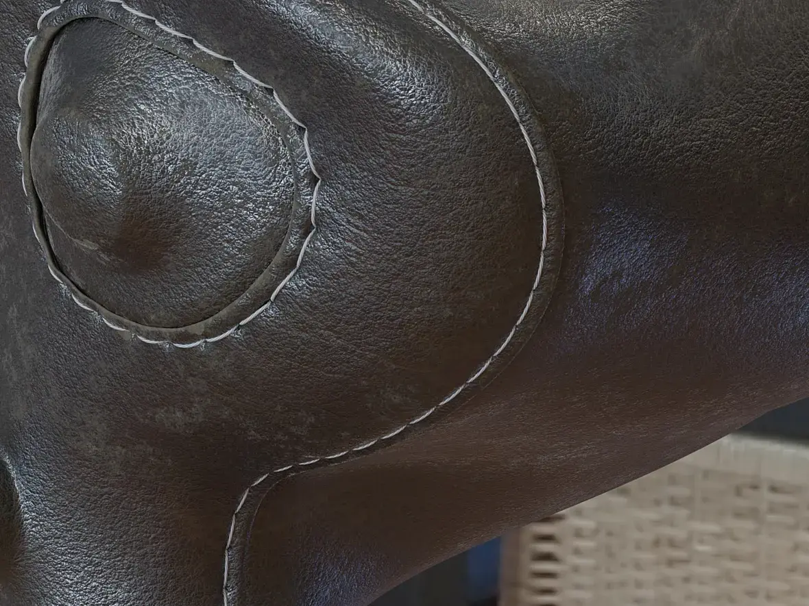 Особенностью материала является умение стареть. Старение осуществляется за счёт добавления пятен потёртости и пыли.распределение пятен и пыли завязано на геометрию, имеются соответствующие регулировки.