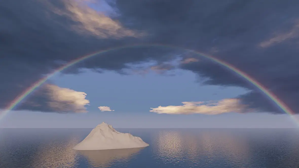 Не смотря на то что конструкция получилась сложная и громоздкая, со множеством параметров, в большинстве случаев настраивать придётся только положение солнца и облаков. Радуга, луна и звёзды вращаются вместе с солнцем, Радуга и луна имеют свои настройки положения но в системе координат солнца. Облака имеют свою систему координат и двигаются отдельно.От высоты солнца зависят цвета неба и облаков, то есть цвета восхода и заката.Разумеется всё можно анимировать.К сожалению выяснилось, что тяжёлый щейдер влияет на скорость расчёта не лучшим образом, по этому в файле содержится ещё и упрощённая текстура, только солнце и облака, и ещё более простая, где небо штатное и к нему добавлены простейшие облака без светотени.В общем берите пользуйтесь если надо.Если какие вопросы,отвечу.