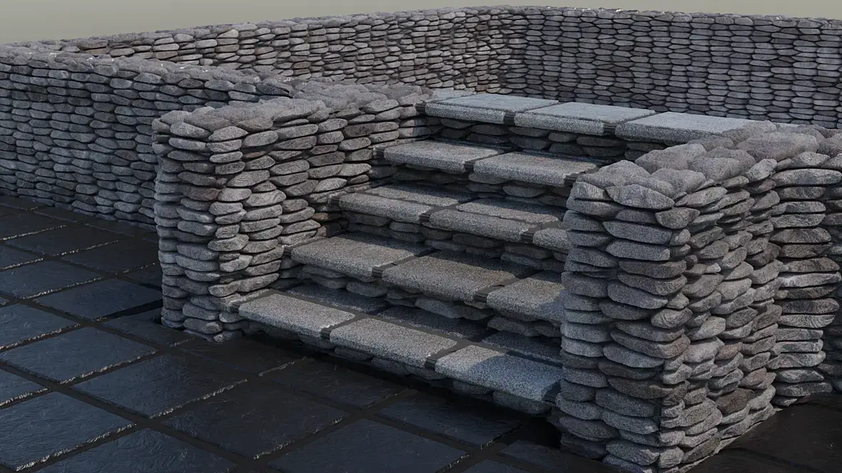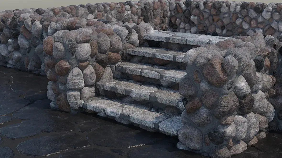 Процедурный материал каменной кладки предназначен для визуализации цоколей и фасадов зданий, столбов, заборов, бордюров из природного камня. А так же дорог и тропинок мощёных природным камнем.