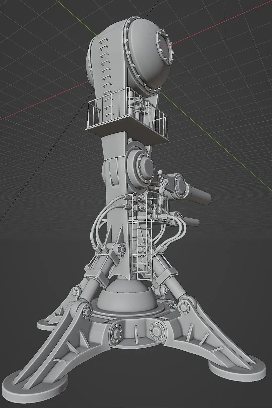 В общем конструкция остро нуждалась в силовом каркасе, и он должен быть убедительным с точки зрения физики, и к тому же соответствовать архитектурной стилистике викторианской эпохи. И это заняло очень много времени, множество вариантов перепробовано. По итогу распилил эйфелеву башню на силовой каркас)))