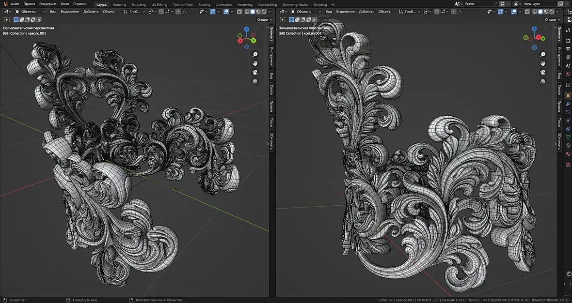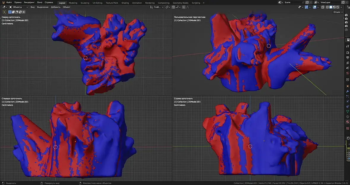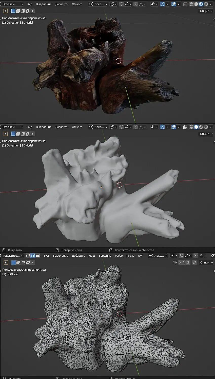 В бесплатном варианте сетка не очень детальна, и испоганена оптимизацией, текстуры тоже. но общие формы достаточно точны. Я провёл два совершенно разных сканирования, с разных ракурсов, при разном освещении, потом попытался совместить результаты, посмотреть на сколько они разные.