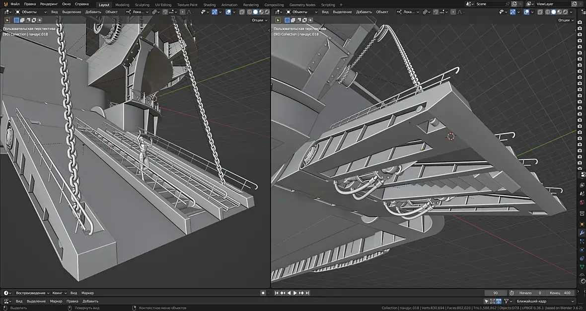 Текущий проект это по сути разработка некоторых механизмов, работающих хотя бы условно. По этому анимация условно делается, дабы проверить работоспособность. Вчера решил перед сном ткнуть на рендер.