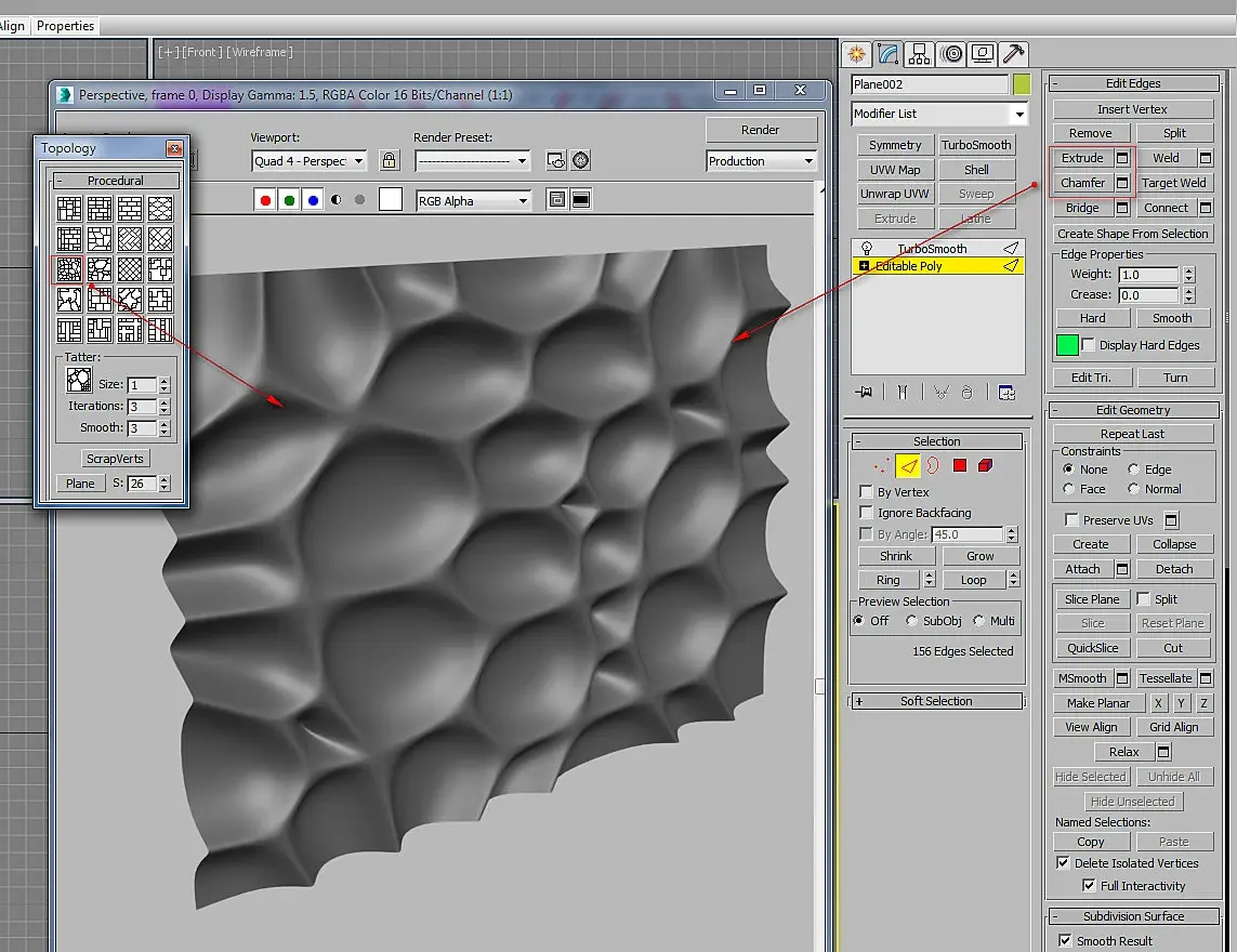 Да, именно этот инструмент ретопологии использовался в том числе. Всё так. Но в исходнике грани неровные и острые, - простым приёмом заострения граней, который используется при turbosmooth, обойтись не получилось.