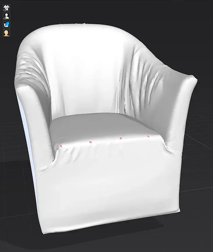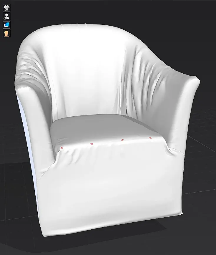 Думаю есть ошибка в выкройке. К примеру на рефе много складок на подлокотниках, а так же в верхней части спинки (особенно видно в тряпке), на модели этого нет.