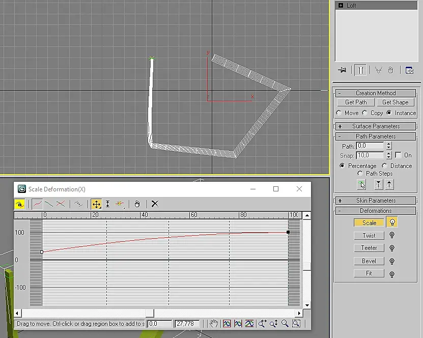 понимаю что тупой вопрос,но как по оному сплайну расположить 3 разных по размеру фигуры Лофтом?