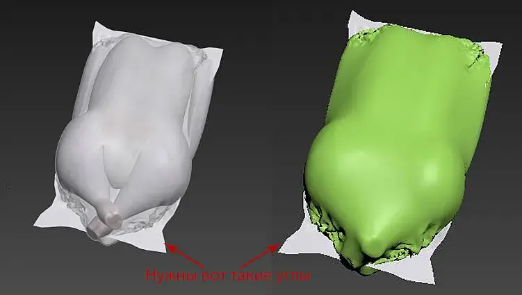 Здравствуйте, создаю упаковку на курицу,но почему-то углы упаковки не получаются, прилагаю картинку. Раньше не работала c cloth может что то очевидное упускаю.Настройки ткани по дефолту кроме параметра depth и offset там стоит 4. Делала по уроку в ютубе "Оборачиваем бутылки в пакет".