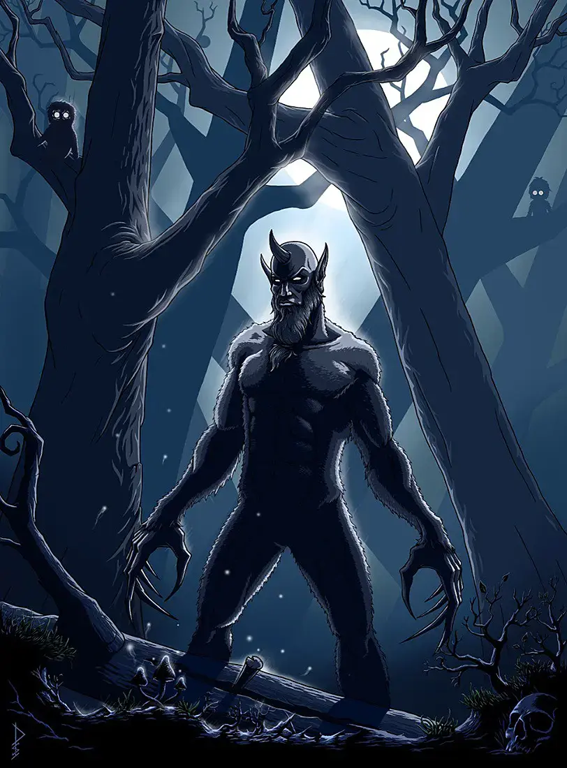 Давно хотел сделать иллюстрацию к татарской сказке Шурале. С детства этот персонаж наводил на меня жуть, но в детских книгах естественно иллюстрации были комичными, и мне всегда хотелось нарисовать Шурале более жутким, вот наконец руки дошли.. ) Сейчас дорисовываю фон, потом еще посажу на ветки парочку лесных духов... )