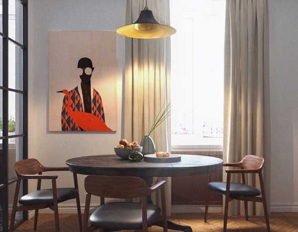 Но можно и придраться, что шторка в тумбочку залезла, а возле пола у нее сглаживания не хватает))))
