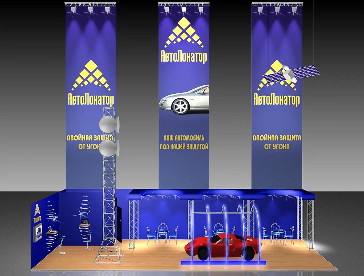 Вот нашел на почте из старого портфолио... Это 2003 год... Сорри, далеко не первая работа, а где-то в первой сотне коммерческих работ... Я тогда активно выставочные стенды дизайнил, выгодная была тема...