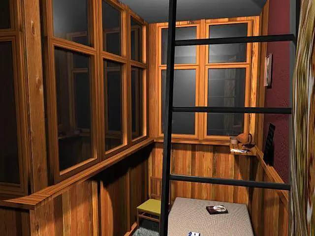 лоджия (ноябрь 2002) - кстати, очень реалистично, тут я даже фотографировал желтую занавеску и сделал текстуру из фото