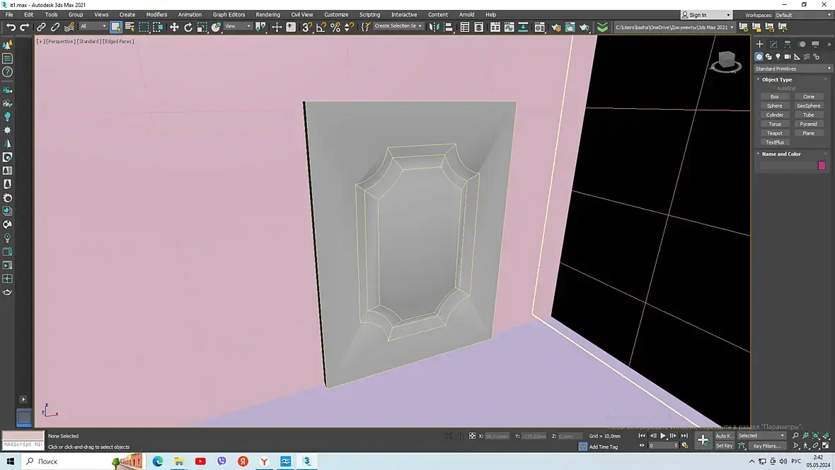Товарищи доброй ночи нужен совет по нанесению данной фрезеровки на фасад,мучаюсь 4 дня) как это сделать?Приложил путь,профиль фрезы и свое кривое творение).Пробовал через модификатор Sweep далее булева imprint, пробовал через Shape merge, рисовал вручную edge, все бестолку сетка ломается выходят артефакты