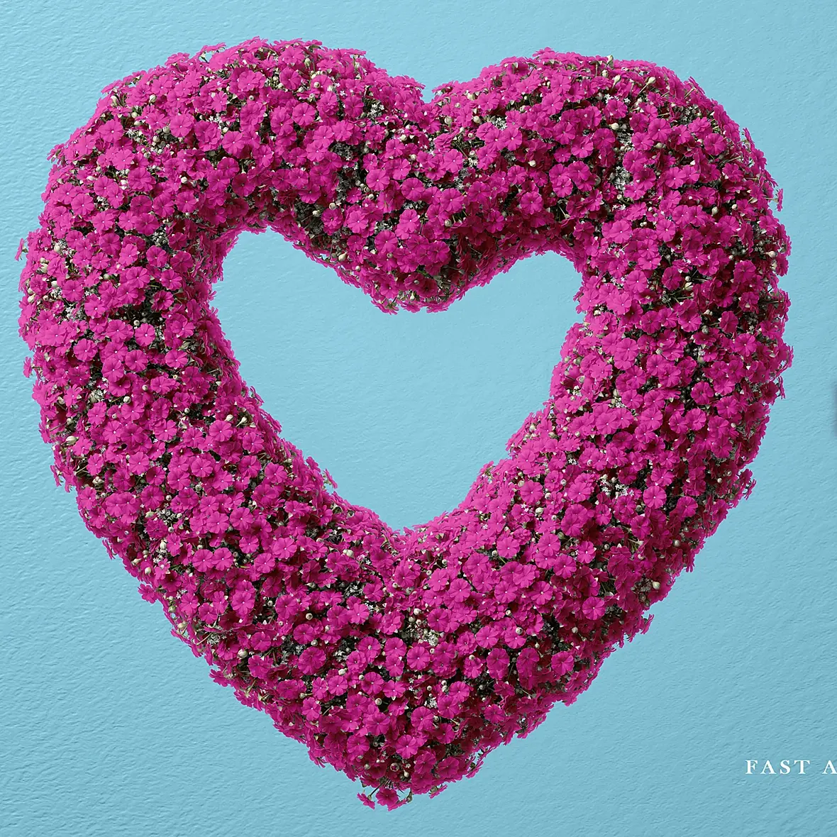 А в чем сложность написать букву, накинуть поверх картинку с цветами и обрезать красиво что бы они выходили за границу буквы? Для примера кистью пробежался по краю.
