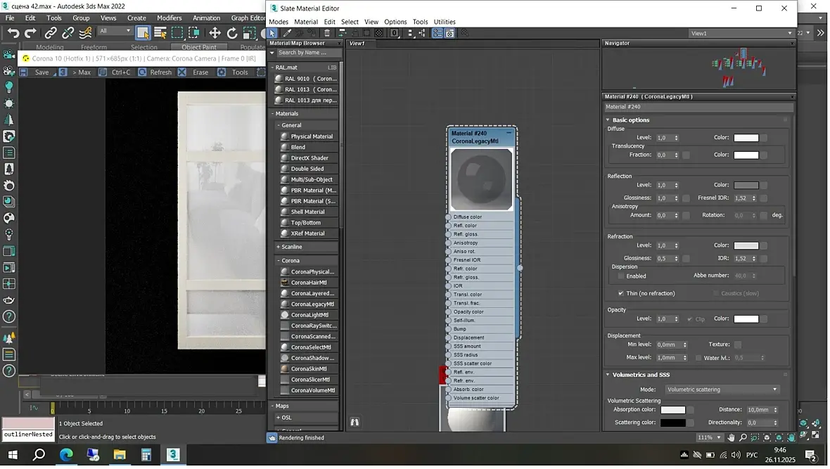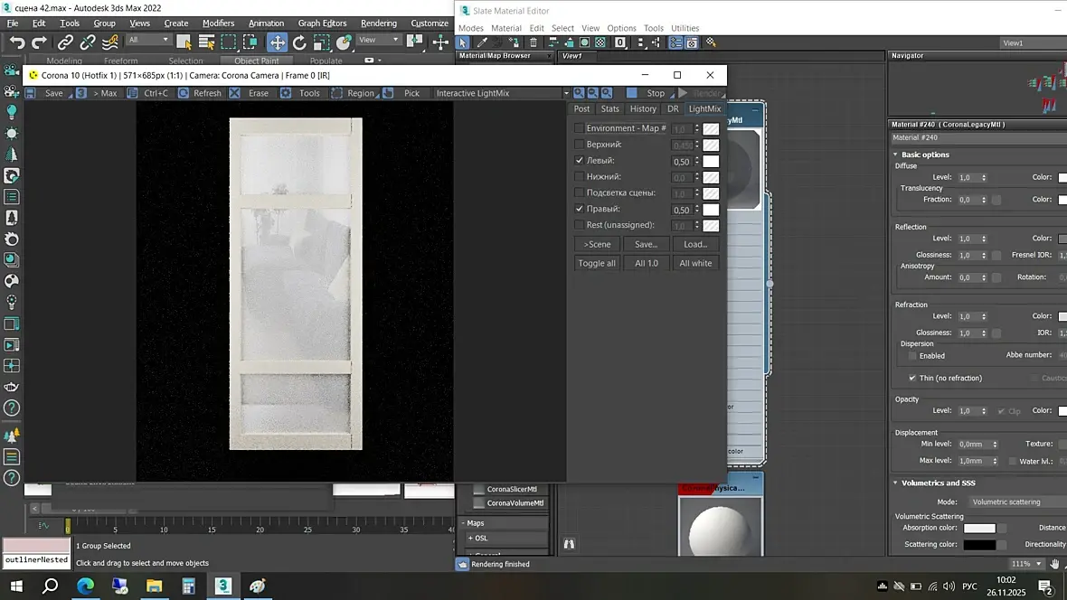 Добрый день. Всем спасибо за ответы. Я почему-то думала, что на сатинированном стекле не должно быть теней. Я работаю инженером на производстве дверей 12 лет, стала изучать немного 3д макс, захотелось попробовать создать модели нашей продукции. Использую corona.