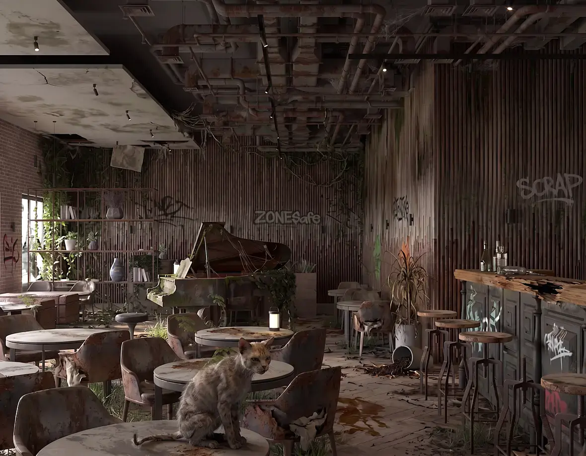 У вас получается плоско, потому что нет падающих теней, слишком много источников света, которые перекрывают всё со всех сторон и потому нет объёма. Отключите лишнее. Пусть будет только искусственное освещение и не общее, а как говорили ранее зональное. Отдельно бар покажите и осветите его ярко, отдельно освещается каждый столик. То есть делайте несколько кадров, где в одном будет акцент на первом плане - бар, в другом - рояль, а в следующем один из столиков.